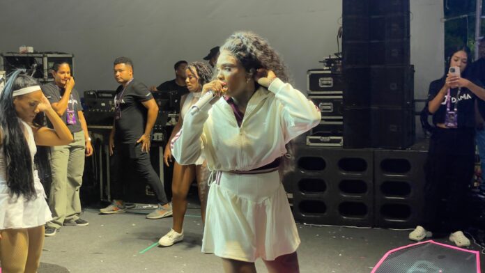 O clima já estava quente, mas ficou ainda mais intenso quando chegou a quinta atração da noite. A mais aguardada pelo público, A Dama, subiu ao palco trazendo o pagodão que a galera queria ouvir.