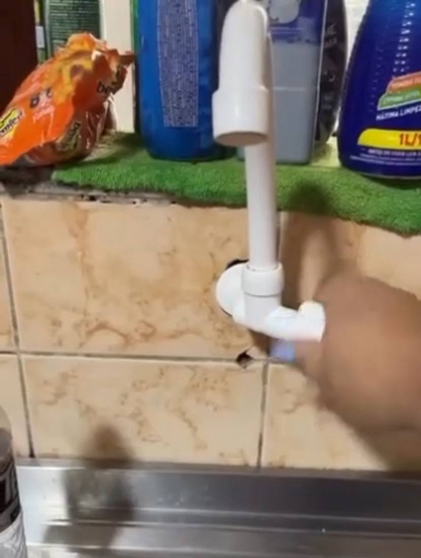 Um vídeo encaminhado por uma seguidora mostra o momento em que a moradora abre a torneira de casa e nenhuma gota de água sai, evidenciando a situação enfrentada pelos residentes da comunidade.