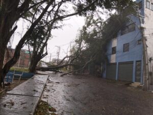Os moradores da Rua Zunalva, em Fazenda Grande 2, bairro de Cajazeiras, vivem momentos de apreensão desde a noite da última quarta-feira (22), quando uma forte chuva acompanhada de ventos intensos provocou a queda de uma árvore sobre uma casa, arrastando junto um poste de energia elétrica.
